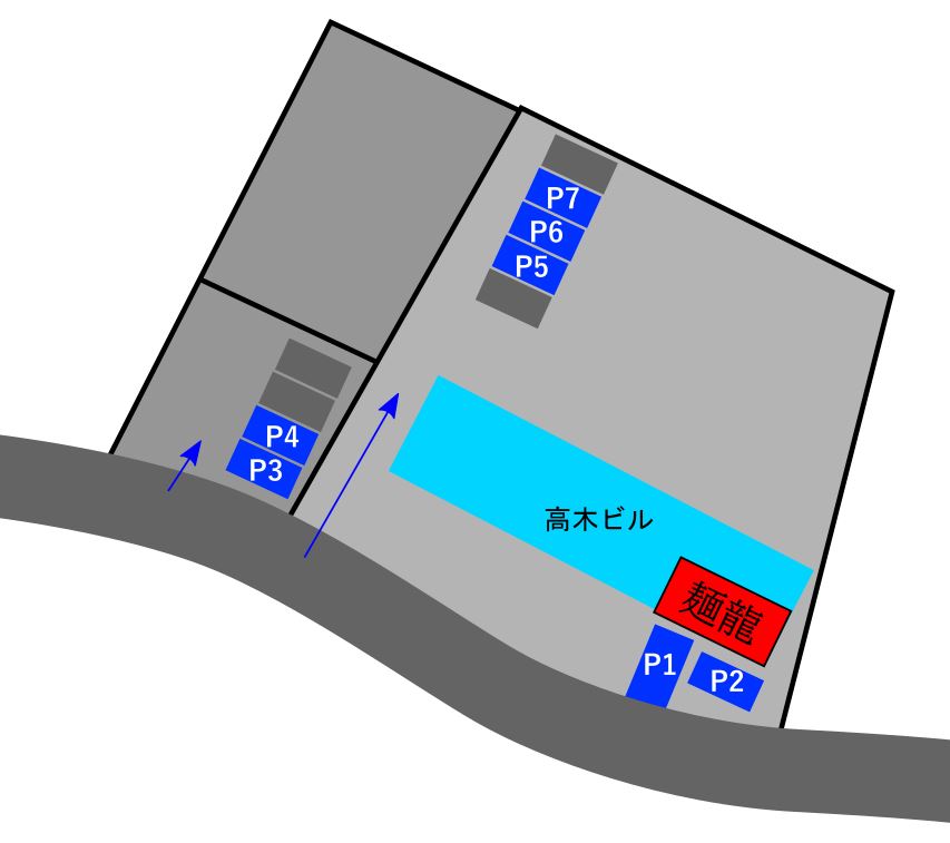 地面に白字でメンリューと書いてあります